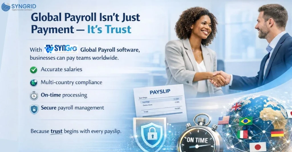 To make this journey easier, businesses can also leverage modern solutions with Syngroo, the Syngrid Global Payroll Product, which is built to streamline international payroll processing, improve compliance tracking, and reduce payroll complexity for growing global teams.