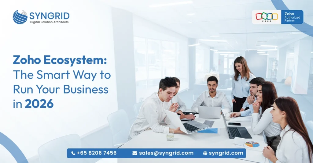 Running a business in 2026 means juggling more tools, more data, and more customer expectations than ever before. Most businesses end up stitching together a dozen different apps and paying for the chaos that follows. The Zoho ecosystem offers a smarter alternative. It’s a fully integrated suite of over 55 business applications that covers everything from sales and marketing to finance, HR, and operations. Instead of managing disconnected software, you run your entire business from one connected platform. In this post, you’ll discover what makes the Zoho ecosystem so powerful, which apps matter most, and how Syngrid Technologies, an authorized Zoho partner, helps businesses implement it the right way.