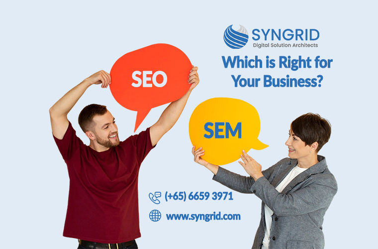 SEO vs. SEM: Which is Right for Your Business? SEO vs SEM in digital marketing is a critical comparison every business must understand to achieve online success. While both strategies aim to increase visibility on search engines and drive targeted traffic, they operate in distinct ways. Search Engine Optimization (SEO) focuses on organic growth through keyword optimization, content creation, and technical improvements, whereas Search Engine Marketing (SEM) involves paid advertising like Google Ads to appear at the top of search results instantly. Understanding the core differences between SEO and SEM in digital marketing enables businesses to choose the right strategy or a combination of both for maximum ROI and digital growth. What is SEO? SEO stands for Search Engine Optimization. It helps your website rank higher in search results without paying for ads. This is done by improving your website’s structure, content, and relevance. Key Components of SEO On-Page SEO: Adjusting content, meta tags, headers, and keywords to fit search engine rules. Off-Page SEO: Getting backlinks, social shares, and mentions from other websites. Technical SEO: Making sure your site is fast, mobile-friendly, secure, and has clean code. Content Marketing: Writing helpful content that keeps people on your site. Benefits of SEO Brings in long-term, free traffic Builds trust and brand reputation Offers a higher return on investment over time More budget-friendly than paid ads What is SEM? SEM stands for Search Engine Marketing. It uses paid ads to boost your visibility in search engines. This includes Google Ads, display ads, and shopping campaigns. Key Components of SEM Google Ads & Bing Ads: Paid listings that appear at the top of search results Keyword Bidding: Choosing specific keywords to show your ads Ad Copy & Landing Pages: Writing attractive ad text and optimizing pages to convert visitors Performance Tracking: Monitoring clicks, conversions, and cost to improve campaigns Benefits of SEM Delivers fast results and traffic Targets the right audience using search behavior Easy to scale up or down based on budget Offers detailed data for tracking success SEO vs. SEM: Key Differences Feature SEO SEM Cost Mostly free, but time-intensive Paid, needs ongoing budget Timeframe Takes months to show results Immediate visibility after setup Traffic Type Organic and steady Paid and depends on ad spend Click-Through Rate Higher for top organic results Lower but more targeted Conversion Rate Improves over time High from day one Maintenance Requires regular updates Needs constant funding and tweaks Which Strategy Is Right for You? Go with SEO if: You aim for steady, long-term traffic Your market isn’t too competitive You want to build authority and trust You’re ready to create and update content consistently Choose SEM if: You want fast results Your industry is highly competitive You have a paid ad budget You’re promoting a launch or time-limited offer The Best Approach: Combining SEO and SEM If you want the best results, don’t choose one over the other combine both SEO and SEM. This way, you can enjoy the long-term benefits of SEO and the quick wins from SEM. Here’s how to make it work: Start with SEM to gain fast visibility and attract early traffic. Invest in SEO alongside SEM to build long-lasting organic traffic. Use SEM data (like top-performing keywords) to refine your SEO strategy. Track and adjust both strategies regularly to stay competitive. By blending both approaches, your business can enjoy steady growth, immediate exposure, and higher conversion rates over time. Summary Both SEO and SEM are powerful tools in digital marketing. Choosing between them depends on your business goals, timeline, and budget.For the best results, use a smart mix of both. SEO builds trust and brings long-term traffic. SEM provides quick exposure and measurable returns. At Syngrid Technologies, we offer expert SEO and SEM solutions tailored to your business. Whether you’re aiming for long-term growth or immediate impact, we’ve got the tools and expertise to help.